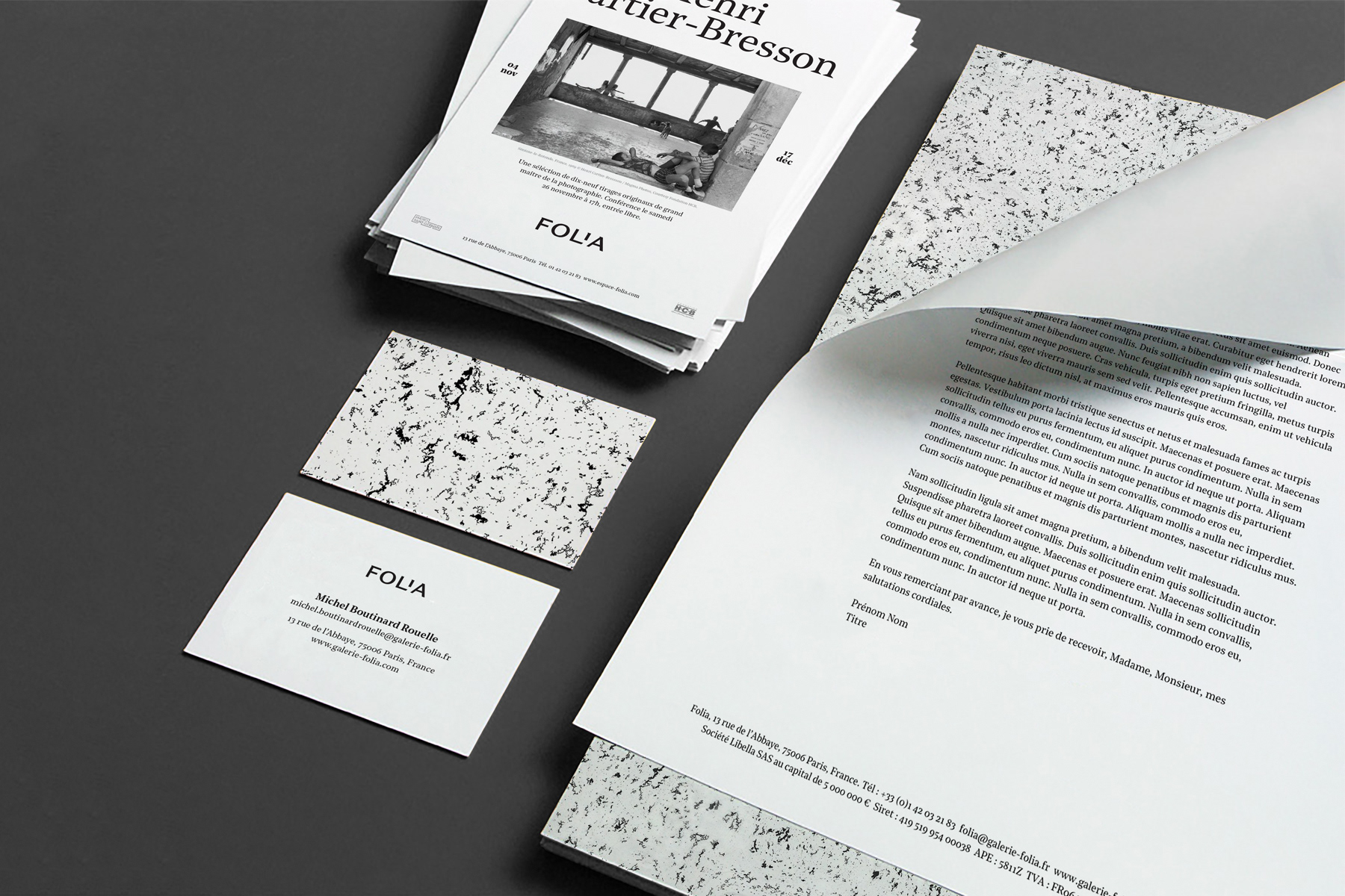 Folia Gallery is located in Saint Germain des Prés, a unique neighborhood in the heart of Paris. A historical district with many artistic and cultural facets, where galleries, cafés and shops blend in a Haussmannian decor. Folia commissioned WIPbrands to convey its values in a timeless visual identity.